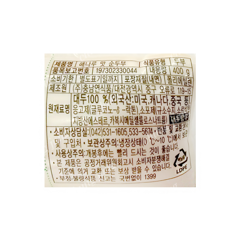 영양성분(식품위생법에 따른 영양성분 표시대상 식품에 한함) 상세설명참조 유전자재조합식품에 해당하는 경우의 표시 해당없음