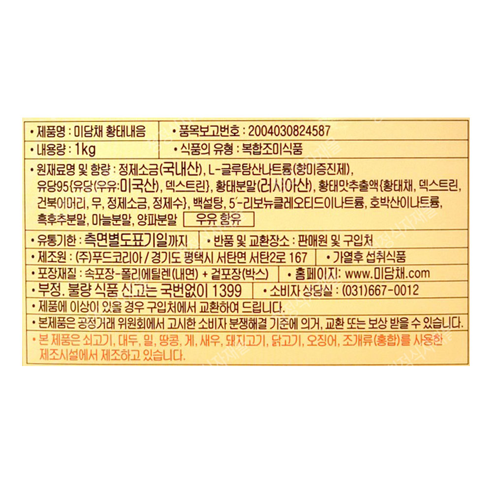 영양성분(식품위생법에 따른 영양성분 표시대상 식품에 한함) 상세설명참조 유전자재조합식품에 해당하는 경우의 표시 해당없음