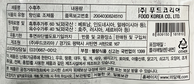 | 생산자및소재지(수입품의경우 생산자,수입자 및 제조국) |