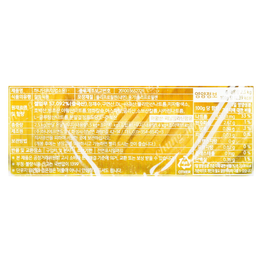 단무지(반달,하나,2.5kg) |