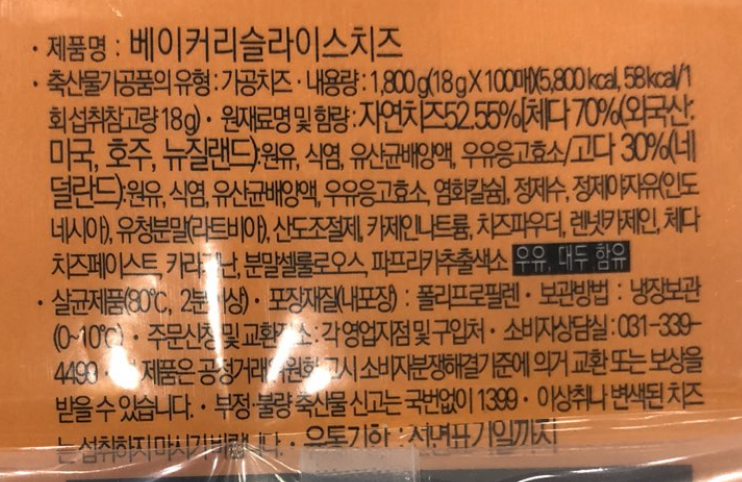치즈(베이커리슬라이스,썬리취,100매)