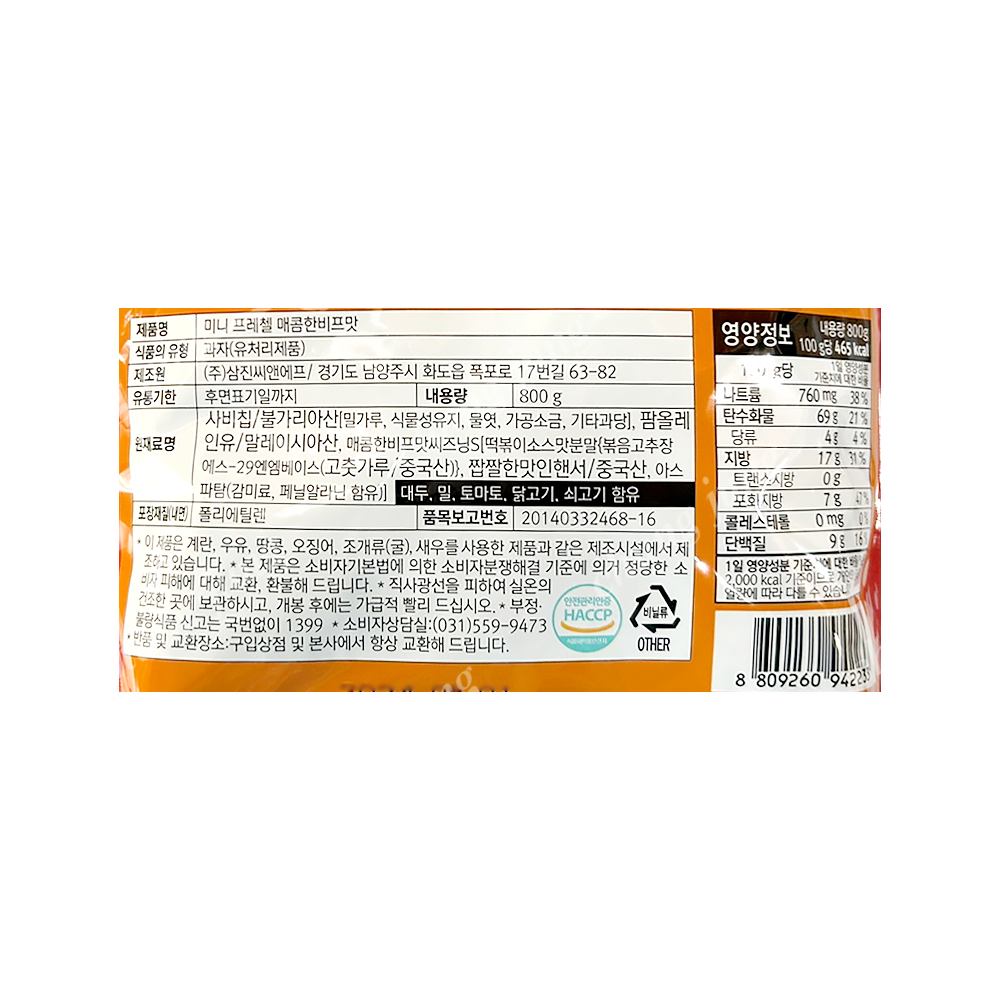 PDY/스낵(미니프레첼(매콤비프),삼진,800g)