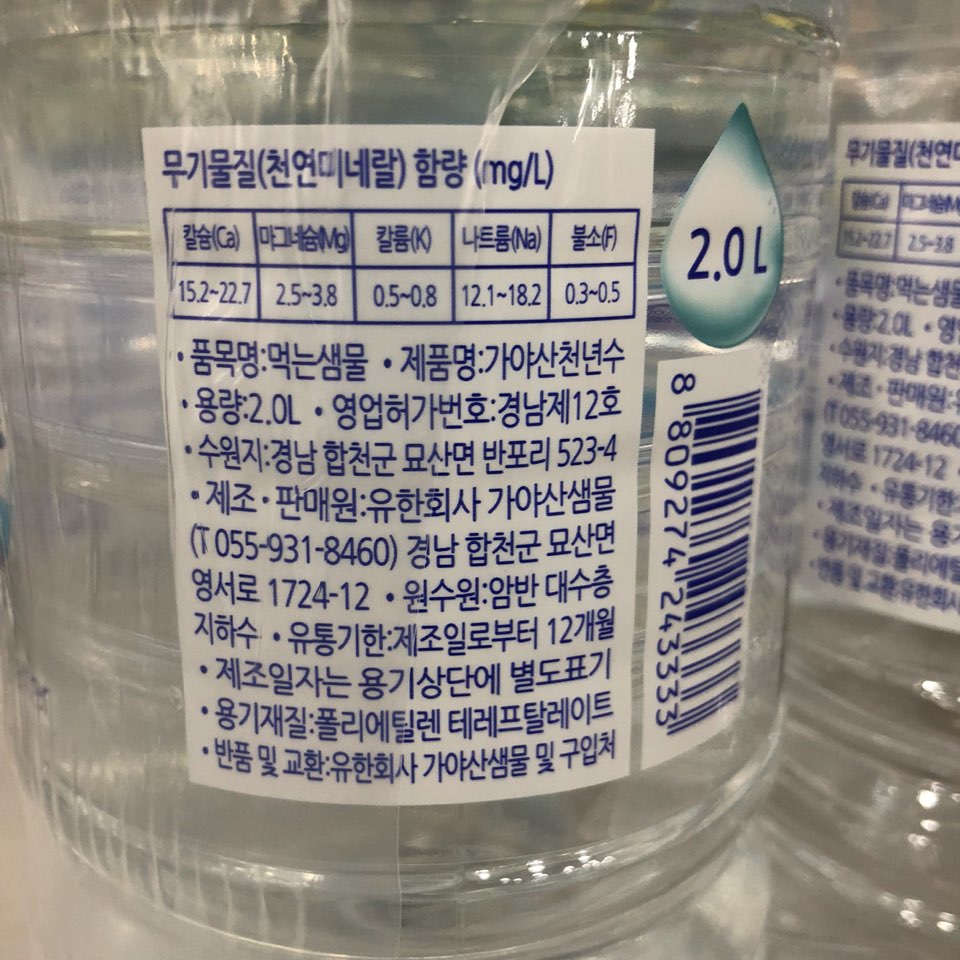 생수(천년수,가야산,2L*6입)