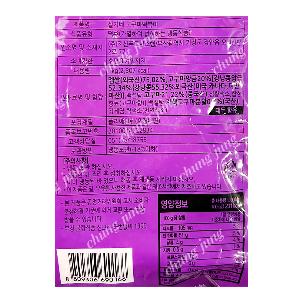영양성분(식품위생법에 따른 영양성분 표시대상 식품에 한함) 상세설명참조 유전자재조합식품에 해당하는 경우의 표시 해당없음