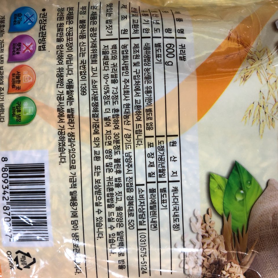 귀리(맑은아침,600g*2입,캐나다산)