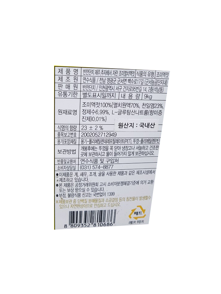 액젓(멸치(조미),반찬단지,9kg,국내산) |