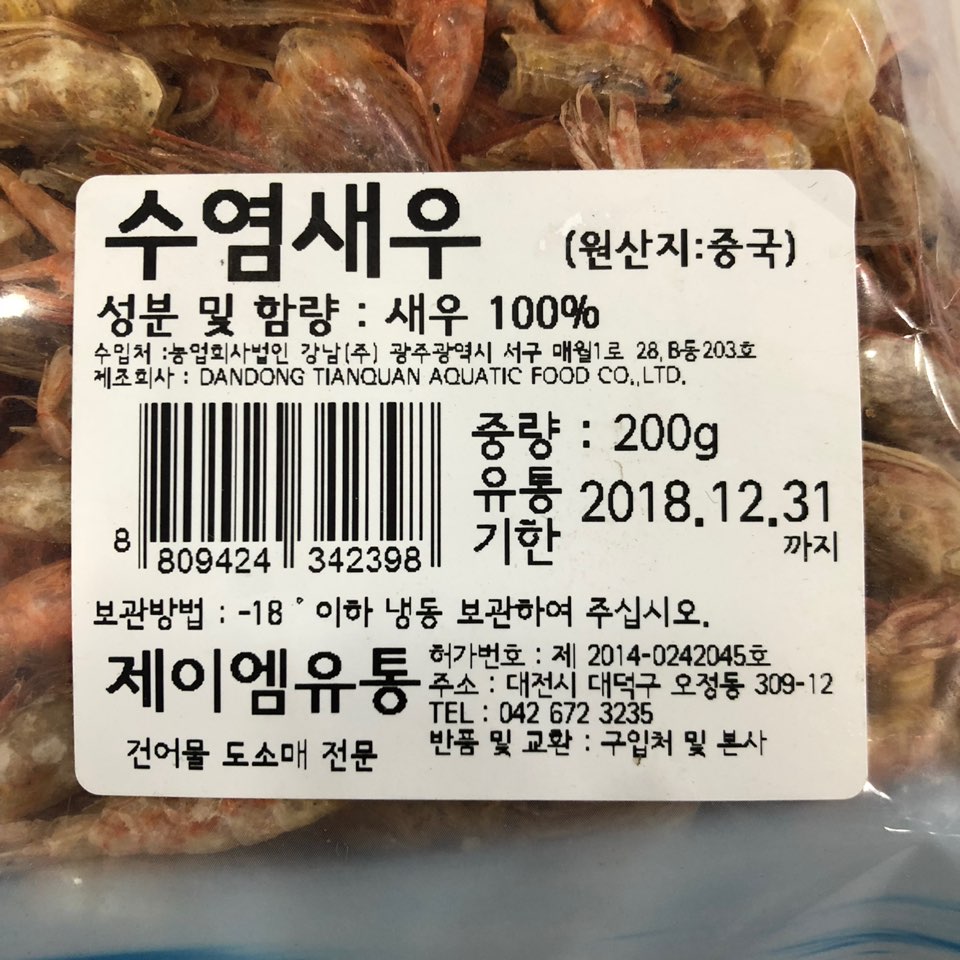 JM/새우(수염,중국산,200g)