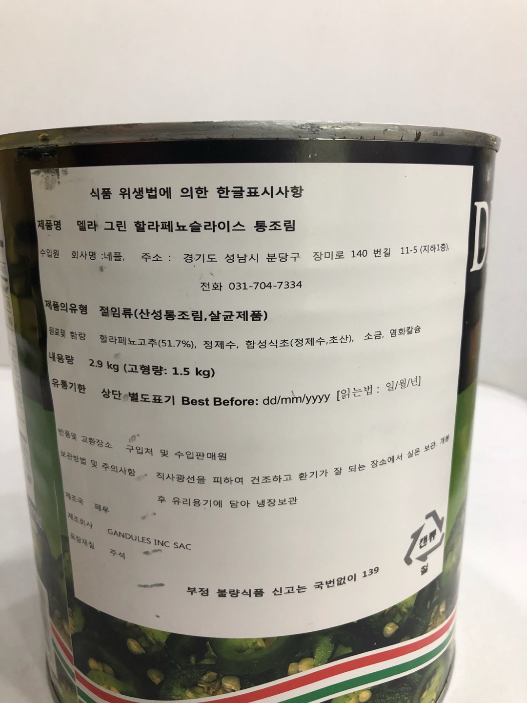 [품절] 할라피뇨(델라,2.9kg)