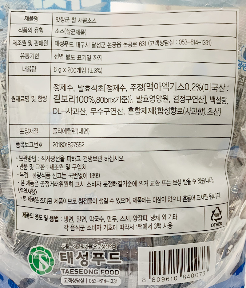 | 상품명 | 식초(일회용,맛장군,6g*200입) | 식품유형 | 상세설명참조 |