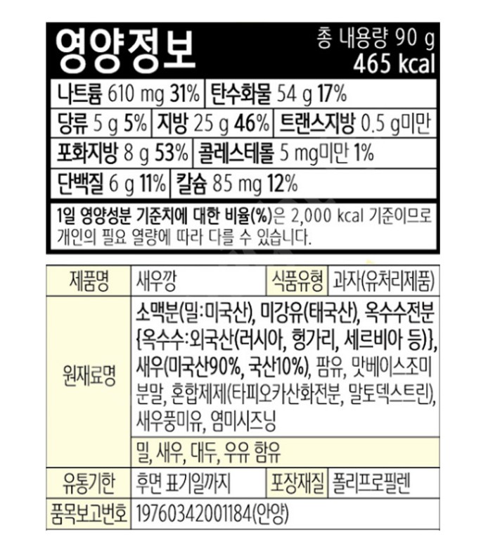 과자(새우깡,농심,90g) |