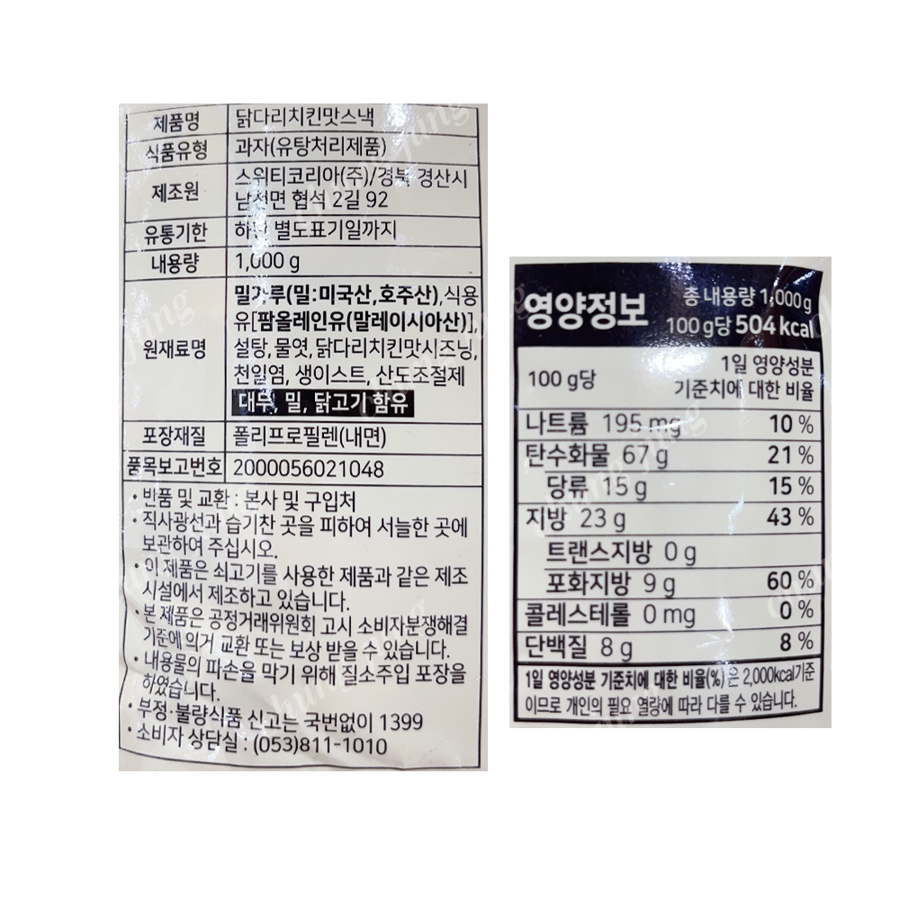 PDY/닭다리치킨맛스낵1kg |
