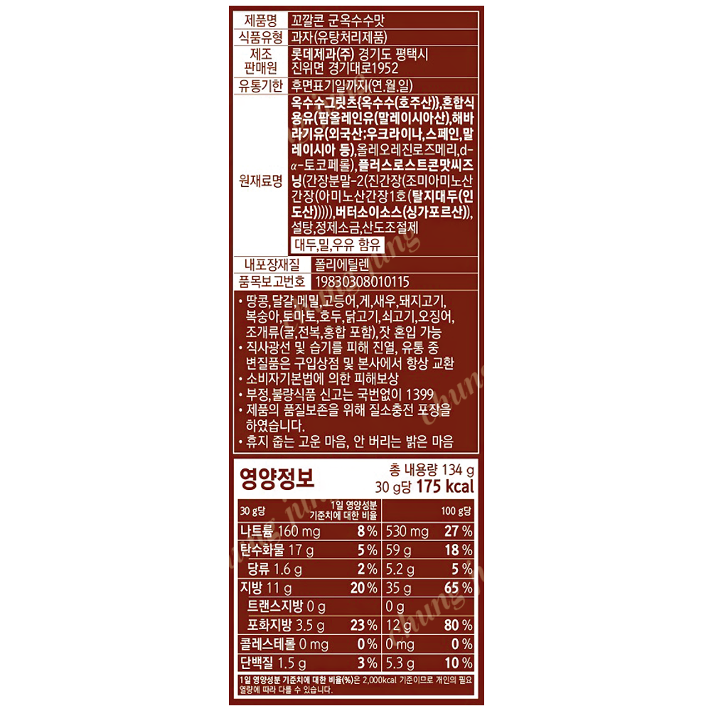 과자(꼬깔콘군옥수수,롯데,134g) |
